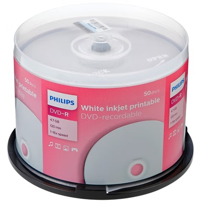 飛利浦(PHILIPS)DVD-R 光盤 空白光盤 刻錄盤 16速4.7G 桶裝50片