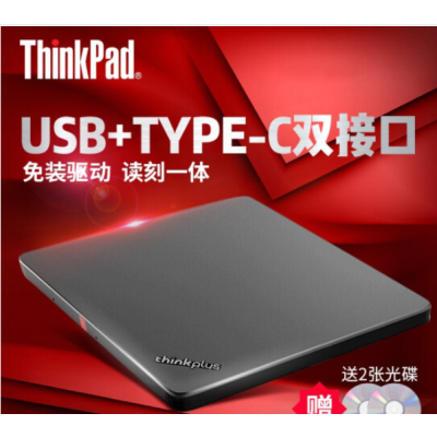 主機配件類 聯想 ThinkPlus TX800 超薄DVD外置光驅刻錄機 24倍速 高速移動光驅 【Type-C+USB雙接口】