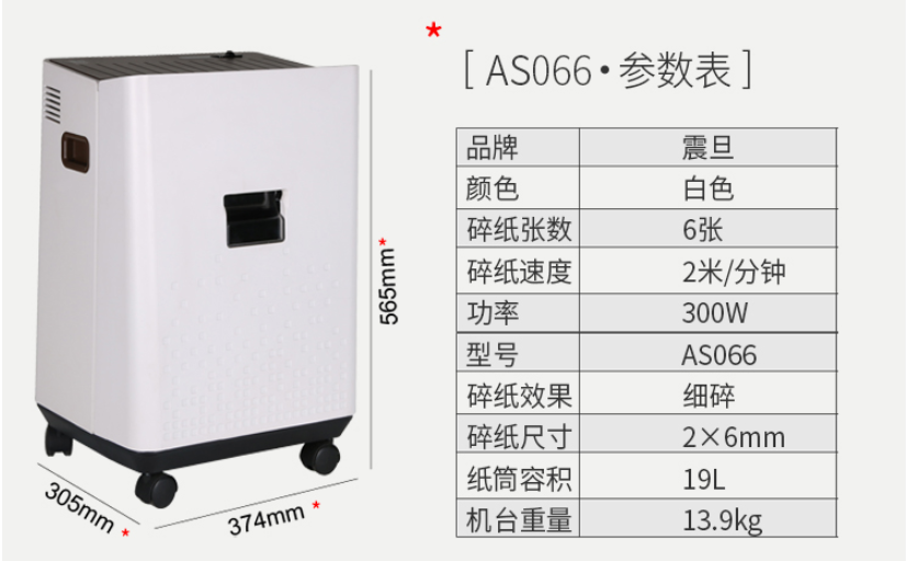 震旦AS066多功能碎紙機辦公電動單次碎紙6張5級保密低音