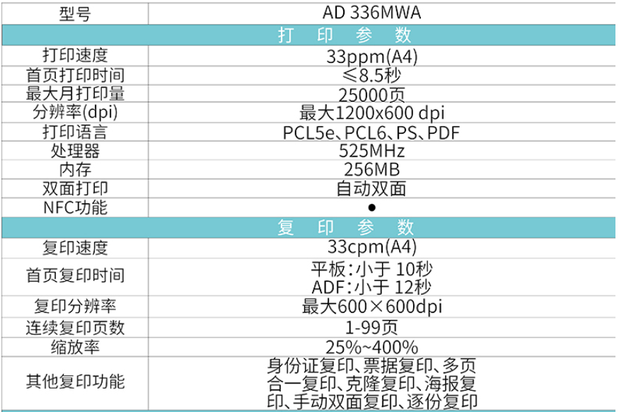 震旦打印機 AD336MWA 新款家用辦公多功能A4黑白打印復印掃描一體機 黑色