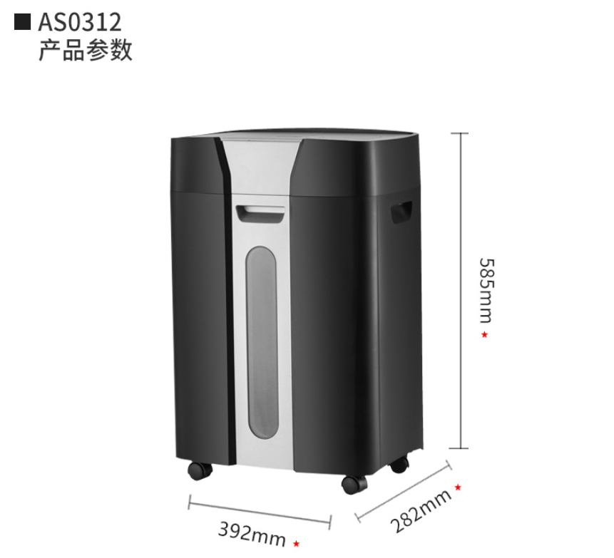 震旦AS0312 專業細碎辦公大功率大型碎紙機 7級保密 3張20分鐘25.6L低音 黑色