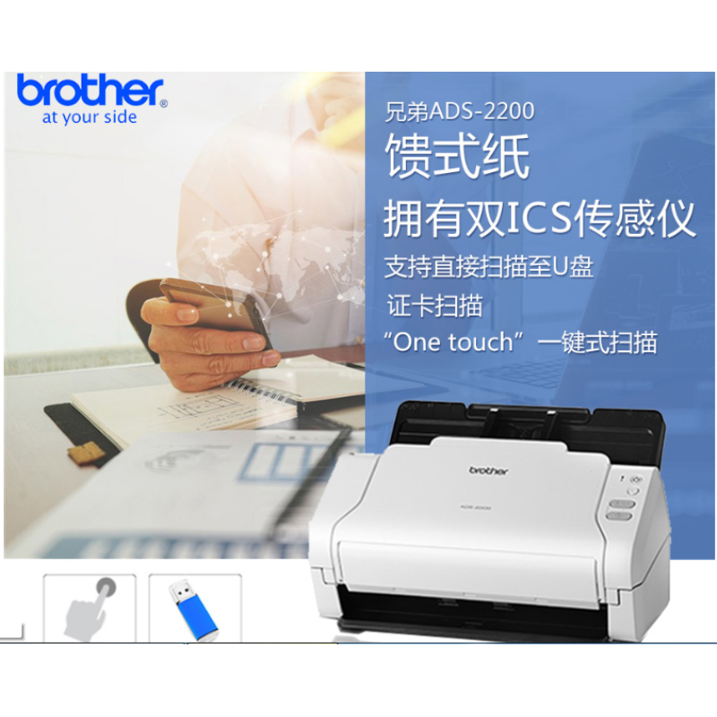 兄弟ADS-2200 高速饋紙式掃描儀A4紙支持U盤掃描證卡掃描自動(dòng)雙面高速高清