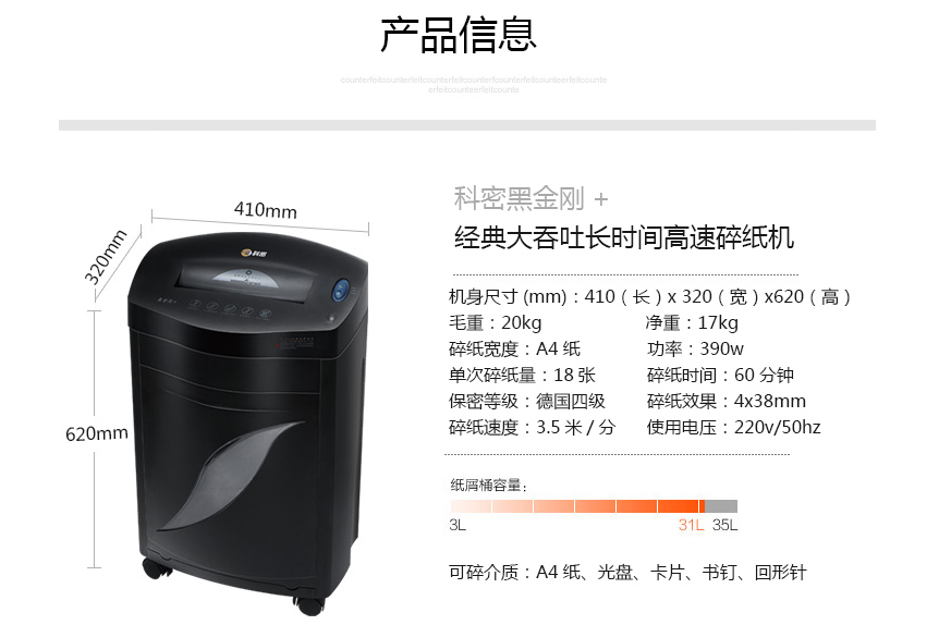 科密P-8720D碎紙機(jī)5級(jí)保密...