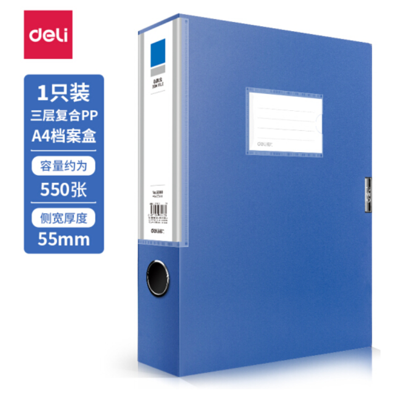 得力(deli)1只55mmA4塑料檔案盒 加厚資料文件盒 財務憑證收納盒