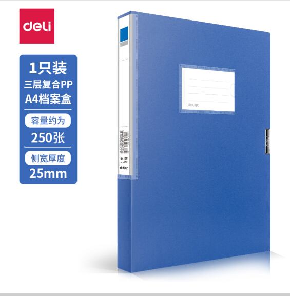 得力(deli)1只25mmA4塑料檔案盒 加厚資料文件盒 財務憑證收納盒