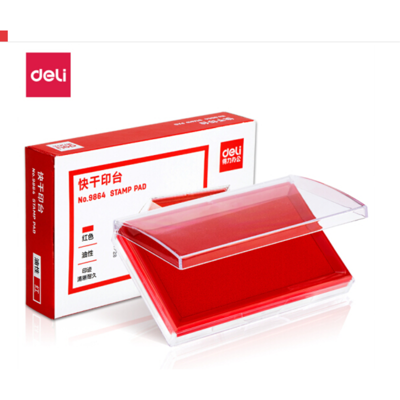 得力(deli)137*88mm透明外殼方形快干印臺印泥 辦公用品 紅色9864