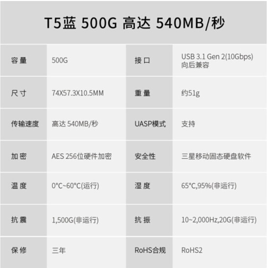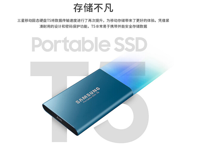 三星(SAMSUNG) 固態移動硬盤T5 PSSD 5T5 移動固態硬盤(珊瑚藍) 500G