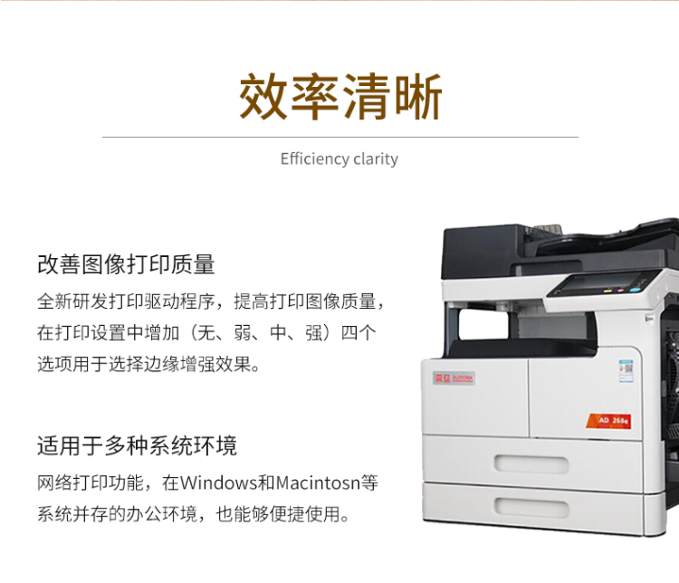 震旦(AURORA) AD268e 黑白A3多功能一體機 自動雙面打印掃描復印 標配