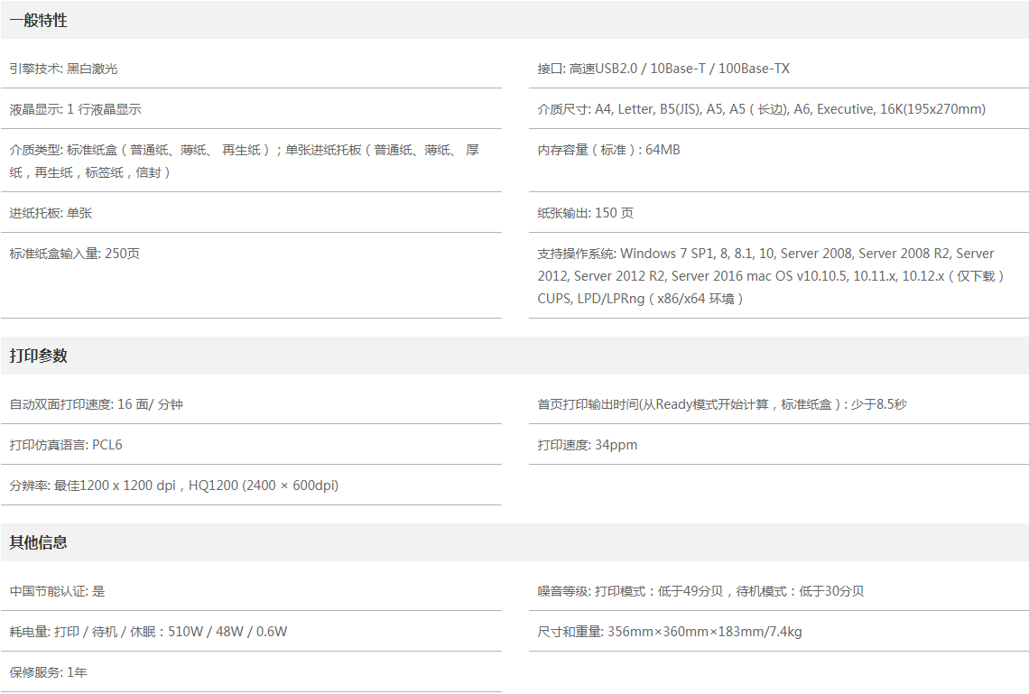 ● 高達34ppm的連續打印速度,能滿足您大印量的辦公需求。