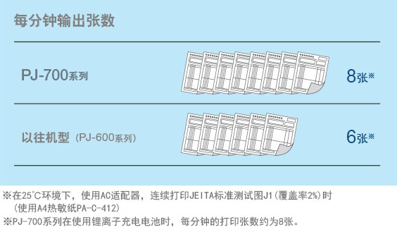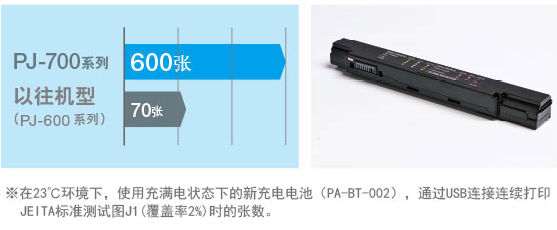 從本次推出的新機型開始,都將標配鋰離子充電電池。因此,與配備鎳氫充電電池的以往機型相比,大幅提高了可打印張數。