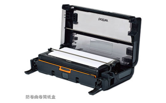 除固定尺寸的單頁(yè)紙外,還可打印卷筒紙。備有打印機(jī)上安裝的卷筒紙架以及可與打印機(jī)一起搬運(yùn)、能直接打印的卷筒紙打印機(jī)盒。