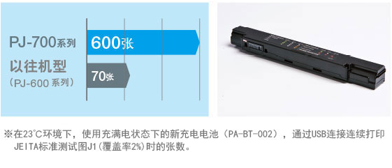 從本次推出的新機型開始,都將標配鋰離子充電電池。因此,與配備鎳氫充電電池的以往機型相比,大幅提高了可打印張數。