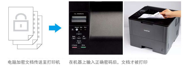 使用安全打印功能,您可以在電腦中對該文檔進行加密設置,然后在一體機面板上輸入密碼,文檔方可被打印出來。