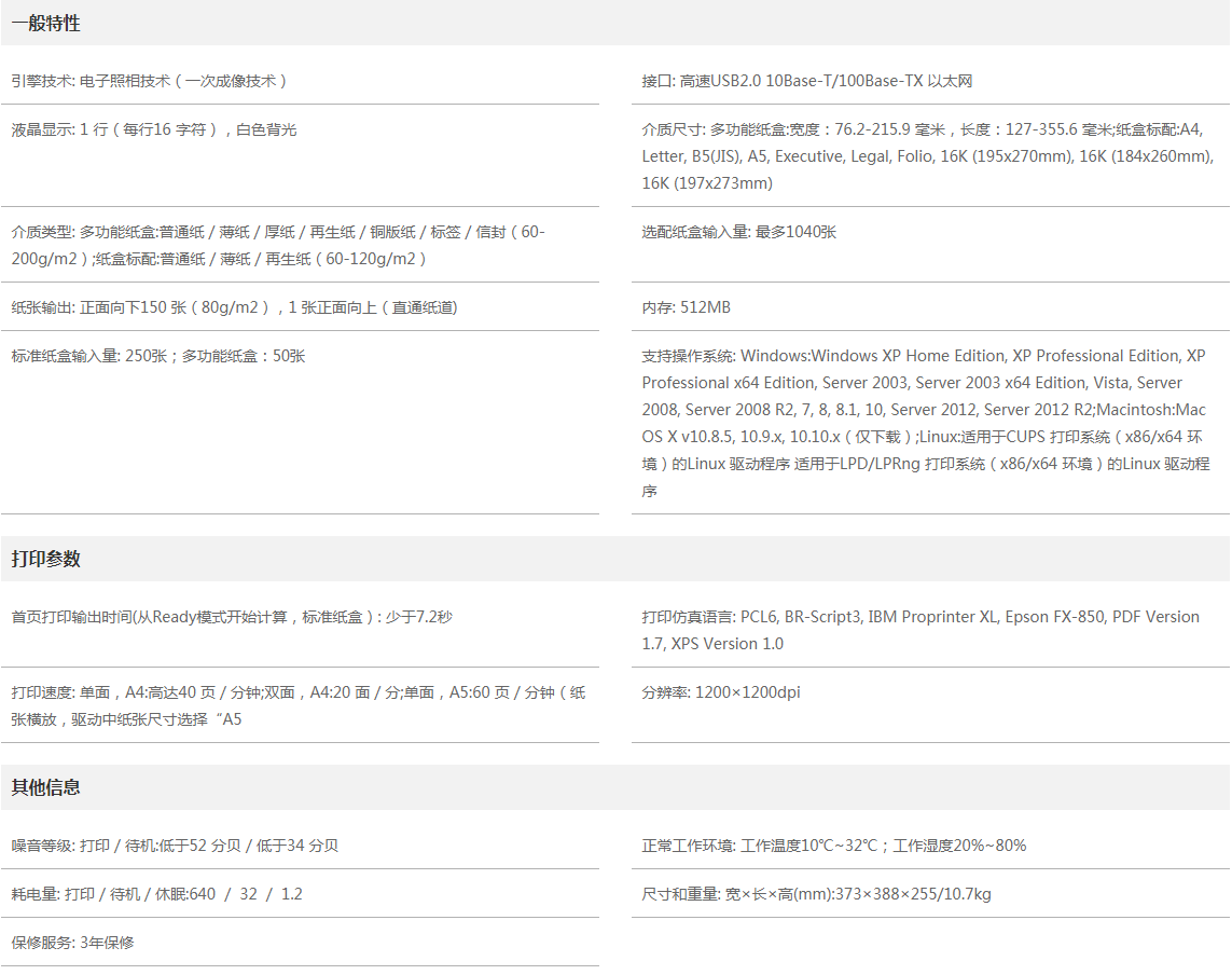高達40頁/分鐘(A4)的打印速度,使您的報告、文件輸出更加快捷,即使任務繁重也能應付自如。