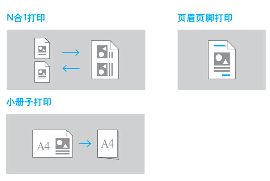 采用小冊子打印、N合一打印、海報打印、水印打印、頁眉頁腳打印方式,方便您制作個性文檔