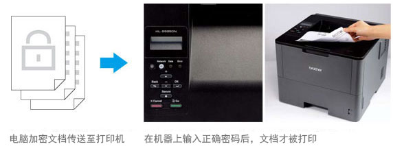使用安全打印功能,您可以在電腦中對該文檔進行加密設置,然后在一體機面板上輸入密碼,文檔方可被打印出來。