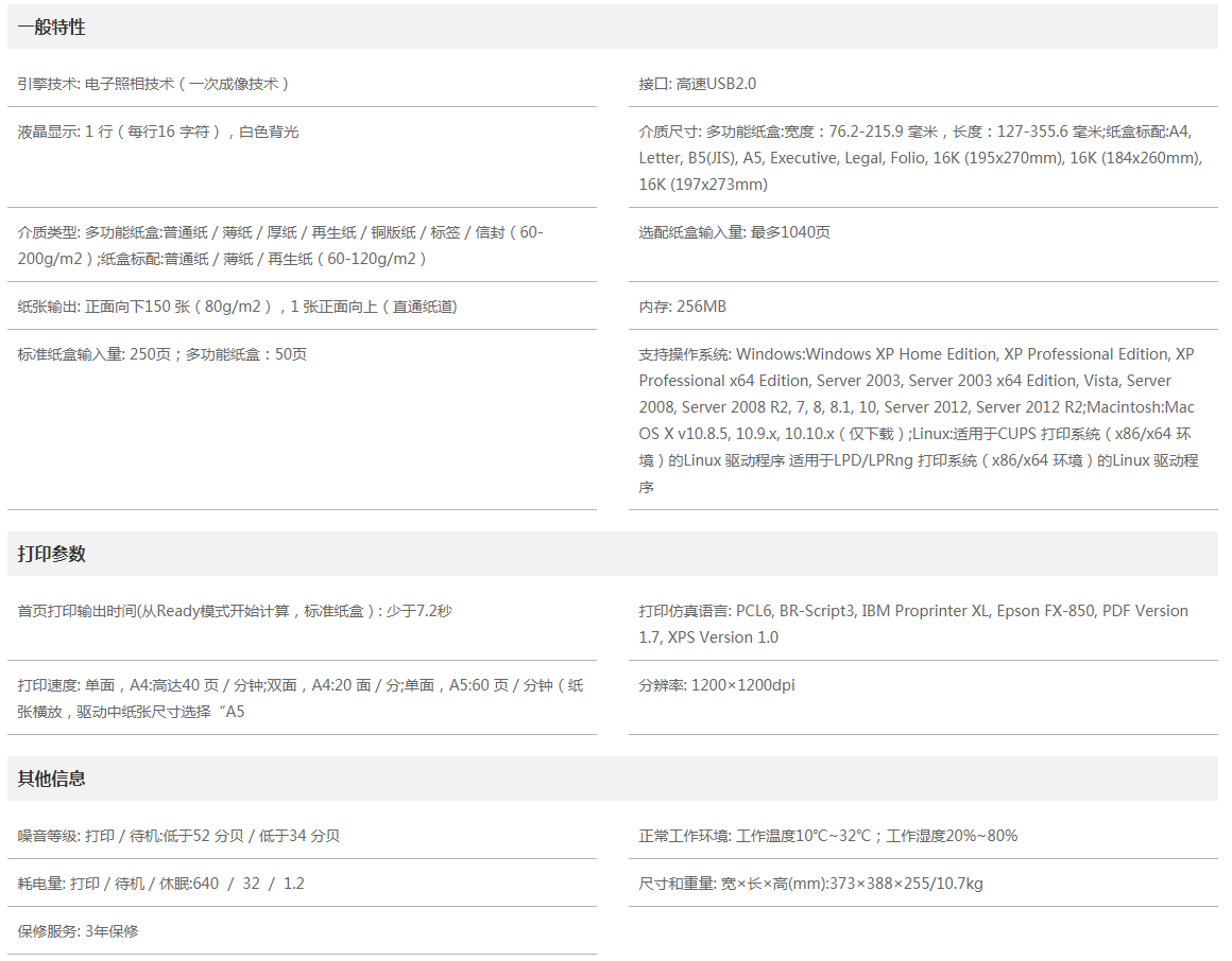 高達40頁/分鐘(A4)的打印速度,使您的報告、文件輸出更加快捷,即使任務繁重也能應付自如。