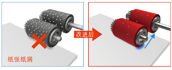 橡膠輥軸采用防塵橡膠,能防止由于靜電導致紙屑吸附在橡膠上,表面打滑而造成的不進紙問題。