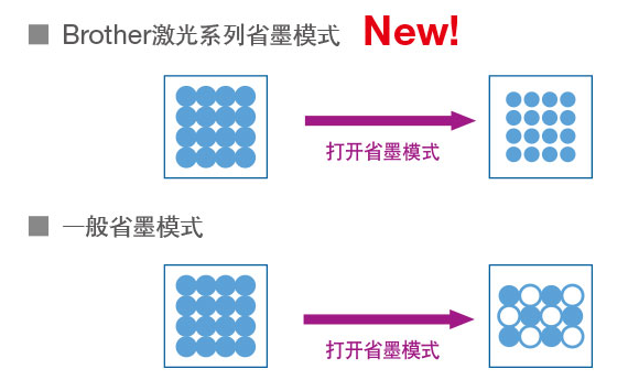 Brother省墨模式是通過縮小墨點(diǎn)空間大小來完成,墨點(diǎn)數(shù)量保持不變,所以即使打開省墨模式也不會影響打印清晰度。
