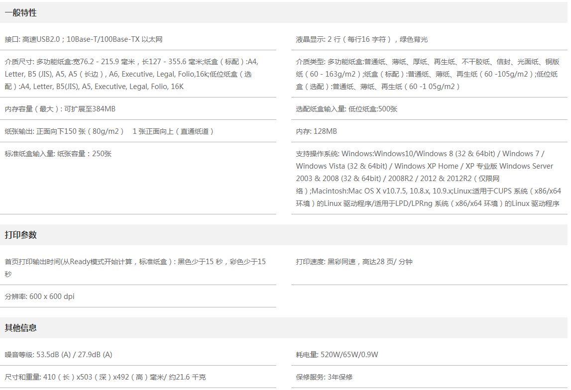 ● 高達600×600dpi打印分辨率
